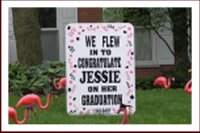 • To celebrate that big birthday or other event, we can cover your lawn with pink flamingos, hearts, cows, dinosaurs, penguins or a selection of many other items of your choice.