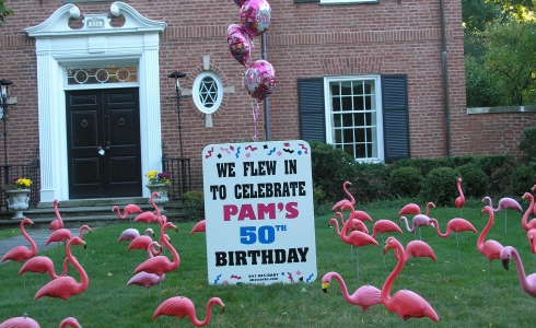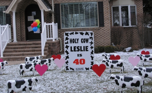• To celebrate that big birthday or other event, we can cover your lawn with pink flamingos, hearts, cows, dinosaurs, penguins or a selection of many other items of your choice.