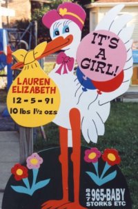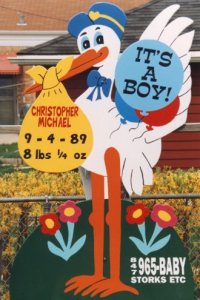 - Personalized stork sign; first and middle name,