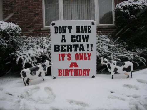 Please thank your birthday elf for a splendid job. My husband is amazed and delighted. It's a little more public than he's used to going with his birthday, he says, but he's laughing, so, as the youngsters say, it's all good. I've already sent pictures to the family. Many thanks for making this a most memorable birthday.  Cheers,